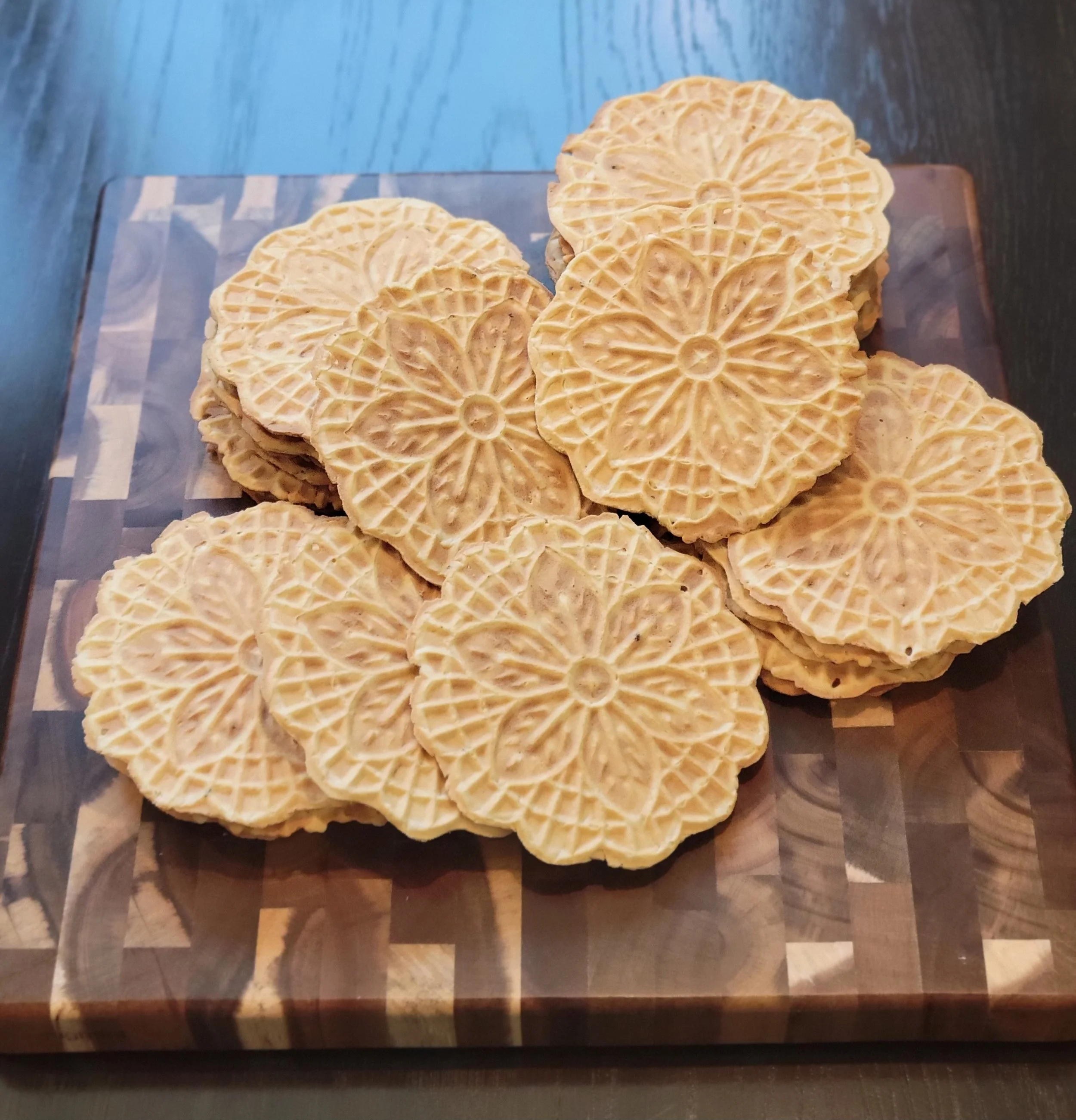 Traditional anise pizzelles, made with classic Italian flavor. Crisp, golden, and delicately embossed, each cookie carries the warm aroma of anise and the familiar taste passed down through generations. Perfect for sharing, gifting, or enjoying with a cup of coffee.